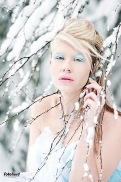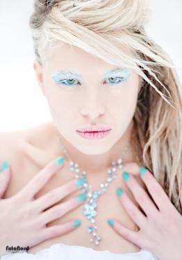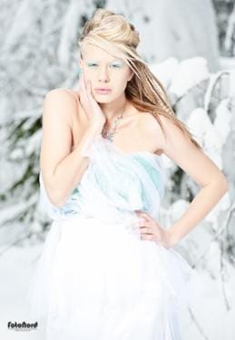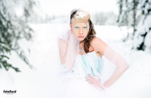 January 30, 2012Brrrrrrr. Sådana här gånger är man ju glad att man är fotografen och inte modellen. Själv står man i varma skor och dunjacka och stör sig på att man inte kan ha på sig ena handsken för att man då inte kommer åt reglagen på kameran. Maria däremot står i en tunn klänning med vatten och snö i håret och på armarna och hon ser helt oberörd ut. Respekt! Maria stod även för smink, hår och styling. Ljussättningen är väldigt enkel på de här bilderna. Några är bara naturligt ljus och några är lite upplättade rakt framifrån med paraply på Rangern. Inga konstigheter och knappt någon retusch alls.