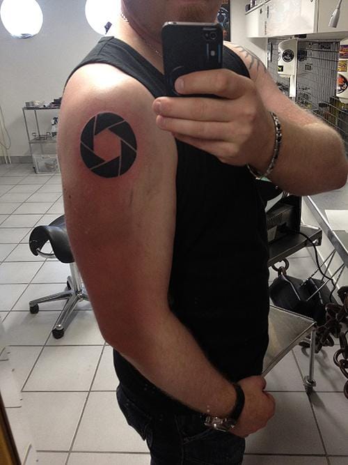 Gjorde en liten nördtatuering i går eftermiddag. Ha funderat på att tatuera en bländarsymbol ett tag och till slut gjorde jag slag i saken. Efter tatueringen var klar la jag upp denna bild på facebook i ett fotografforum. En halvtimme senare hade jag mail från en journalist som ville göra en kort intervju. I dag dök det upp som en “nyhet” på Fotosidan. Lite kul ändå 🙂