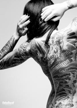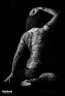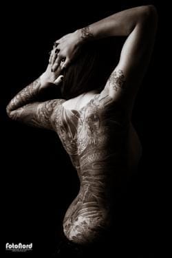 Jag har alltid tyckt om svart/vita porträtt med hög kontrast av personer med tatueringar. Det är grymt snyggt helt enkelt och tatueringarna framhävs på en riktigt bra sätt. Särskilt när det är motiv som har mycket olika färger som ger fina kontraster i svart/vitt. Jag var i kontakt med Linda för något år sedan angående att fota en session med fokus på hennes grymma gaddningar. Först igår, ett år senare, blev den sessionen av, men bättre sent än aldrig. Det ligger onekligen en hel del smärta bakom dessa konstverk. Tatuerarna som skapat och utfört tatueringarna är (rygg/ben) Harimatsu Matti Sedholm samt (arm) Red dragon, Harimatsu Matti Sedholm. Själv har jag en tid inbokad för tatuering nummer fyra i mitten av juni. Inget så här stort/storslaget dock, men det ska bli kul. Jag har mycket enkla motiv sedan tidigare och hade tänkt ge mig på ett lite mer detaljerat motiv den här gången.