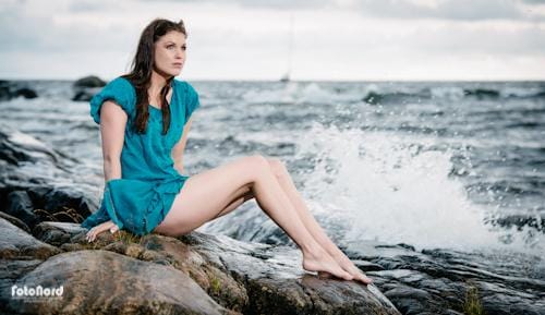 Jag fortsätter att lägga upp bilder från Bettnästräffen. Här är Lina på klipporna mot havet. Det syns inte på bild men det blåste riktigt kallt den kvällen. När vågorna slog in mot klipporna kom det också massor med svalkande vattendroppar flygande i luften. Mest på Lina som stod närmast, men jag fick torka av frontlinsen hela tiden. Den som frös mest var nog ändå Linas pojkvän Robert som var ljusassistent på de här bilderna.