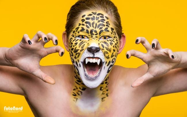 November 6, 2012Nu är det dags för en liten färgklick i bloggen igen! Den här gången är det Elin som sminkade sig själv till en leopard på rekordtid efter att vi avslutat en annan fotografering. Jag vet inte vad som är mer imponerande. Att man kan sminka sig till en leopard på fri hand eller att man gör det på under en halvtimme. Riktigt coolt blev det hur som helst. Nästan synd att man inte hade lite fler “djungel-props” i studion vid tillfället. Bilderna är i princip obehandlade direkt från kameran. Mjaaooo!