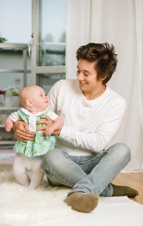 Här är en mysig familj som jag fick möjlighet att lära känna lite grann en sommarkväll i början av juli. De anmälde intresse att stå modeller för min kommersiella portfolio och jag besökte dem ett par veckor senare i deras hem på Mariestrand. Dottern som var ett halvår var en riktigt charmfia som orkade med en riktigt lång fotosession utan gnäll eller trötthet. Klart imponerade. Det är verkligen inte så lätt att hålla fokus i den åldern. Jag såg redan i familjens intresseanmälan att de skulle funka mycket bra på bild till mitt projekt och som ni ser hade jag inte fel. Det var synd att vädret inte tillät fotot utomhus den dagen, men det får vi ta en annan gång. Stort tack till er A, T och E !