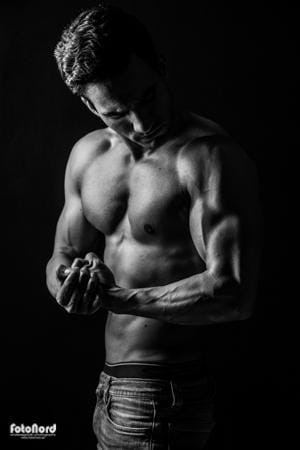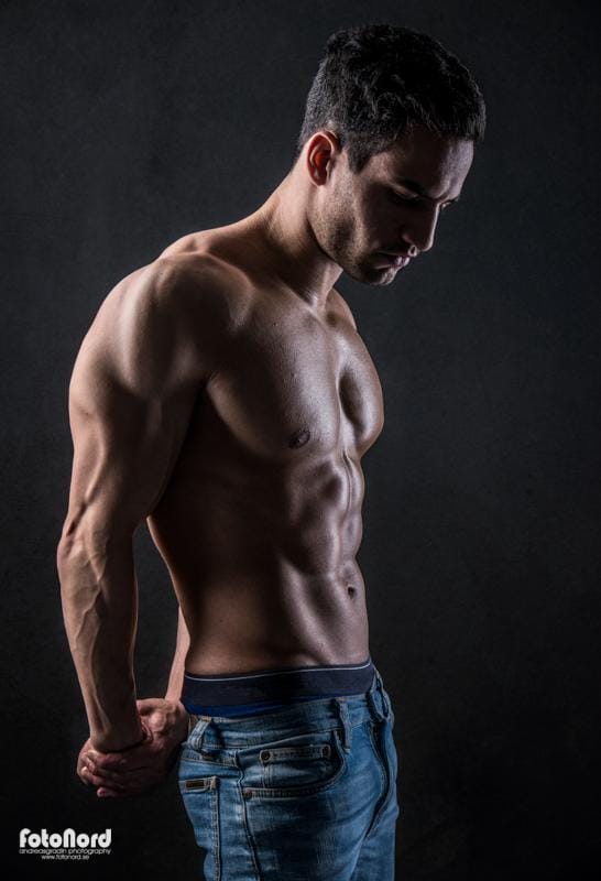 December 19, 2013Det här är Leonard. Ännu en kille med grym fysik som förevigat formen i in studio. Jag tjatar om det jämt, men att fota killar är riktigt kul! Man får tänka annorlunda både med ljus och efterbete vilket förhoppningsvis gör att man utvecklas. En av de detaljer som jag verkligen gillar att framhäva när jag fotar killar är käklinjen. Får man till en bra käklinje med ljuset och vinkel så blir oftast bilden riktigt bra. Ibland får man kommentarer att personer på mina bilder inte tittar in i kameran. Det är en sån där “oskriven regel” som folk verkar ha om foto. Lite som den där grejen att folk lämnar massor med luft ovanför människors huvud när de komponerar bilder. Man har lärt sig att det ska vara så. När, var och hur vet jag inte, men det verkar vara fastpräntat hos de flesta. Är det nåt tips jag kan ge för att förbättra familjebilderna så är det att gå närmare. Och när du gått närmare, går du ytterligare lite närmare. Skit i om du kapar övre delen av huvudet eller inte får med hela kroppen. Jag lovar dig att du kommer att få mycket mer personliga bilder som känns nära och levande. Och man behöver inte kolla in i kameran jämt heller. Sådeså 🙂