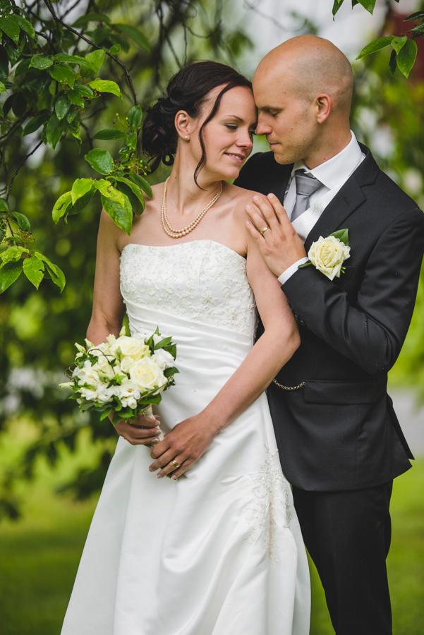 Detta var en av försommarens regnigaste dagar, så ni kan gissa vilket utomordentligt lyckligt äktenskap dessa två kommer att få om man ska tro på skrock 🙂 Trots regn och rusk gjorde vi ett tappert försök att fota det mesta utomhus och det gick superbra. Man kan inte riktigt se på bilderna vilket busväder det var den dagen, och då man väl lyckats någonstans tycker jag. Stort tack till brudparet att jag fick vara med på er stora dag och tack för er lättsamma inställning och glada humör. Sånt gör mitt jobb som bröllopsfotograf inte bara lättare, utan också så himla kul!