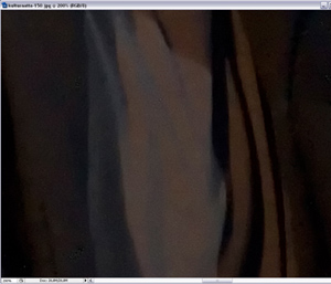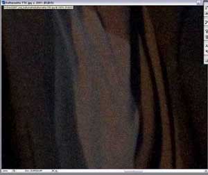 ....men om man zoomar in lite på de mörkare partierna i bilden ser den förskräcklig ut. Skulle man göra en förstoring av denna bild skulle den se förkastlig ut. Den lider av brus i både luminans och färg.