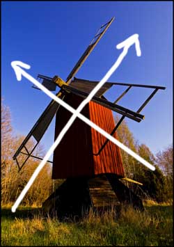 Diagonalen är kanske den mest spännande linjen i bilden. En diagonal som går från det nedre vänstra hörnet till övre högra är långsammare än sin motsvarighet. Om två diagonaler korsas skapas oro i bildytan.
